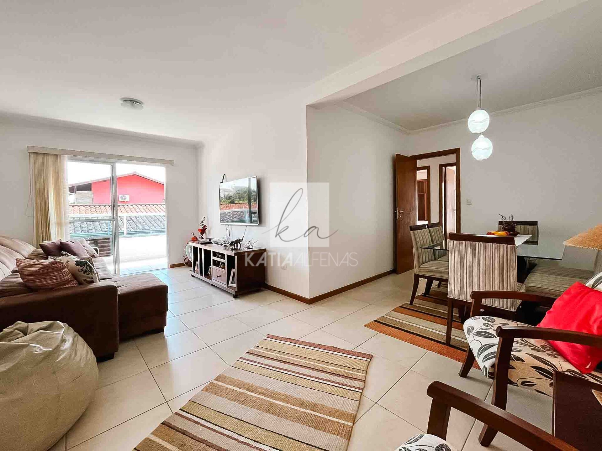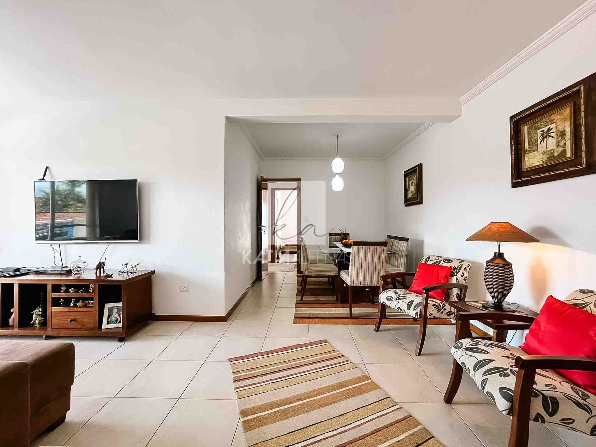 A sala é ampla e para dois ambientes, conectada à uma varanda gourmet generosa, que também dá acesso à cozinha e área de serviço, tornando os ambientes mais funcionais, além de um lavabo.