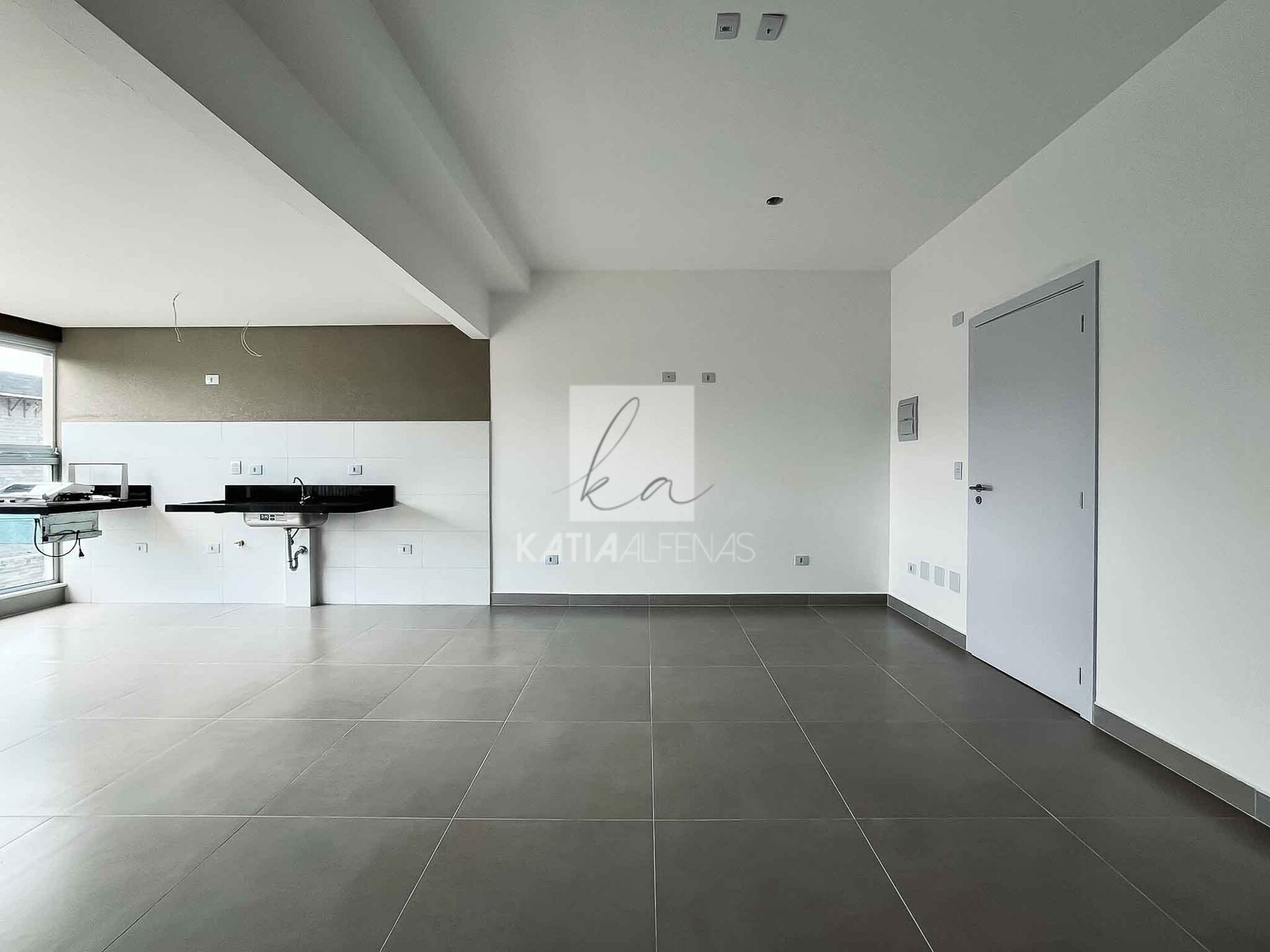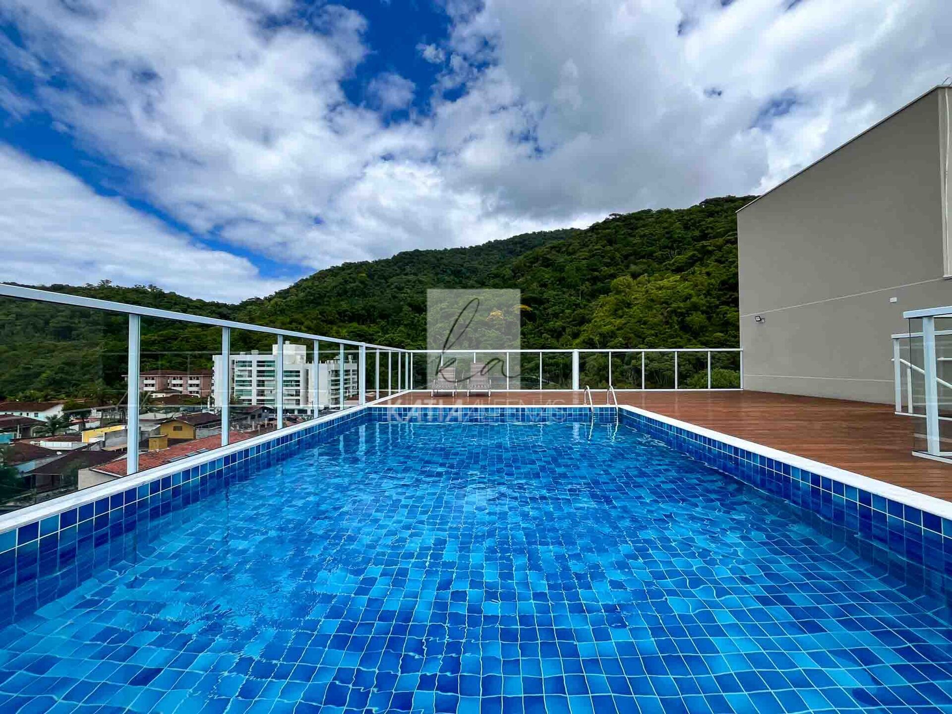 O condomínio conta com churrasqueira, solarium e piscina, além de uma vista maravilhosa para a serra e mar.