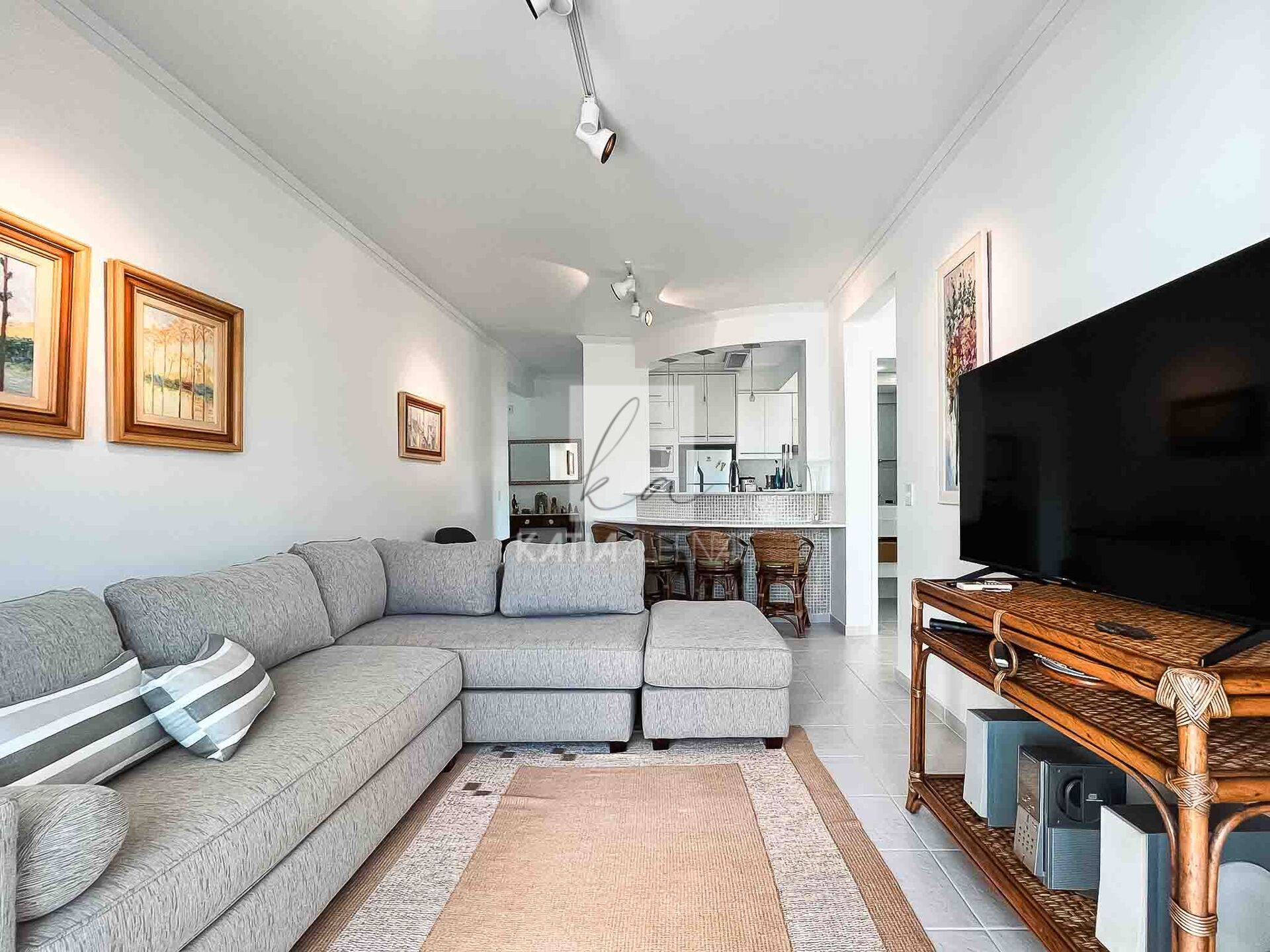 Mobiliado e climatizado, a sala para dois ambientes oferece conforto térmico, ventilação e muita luz natural, além de uma varanda gostosa para uma redinha no fim de tarde.